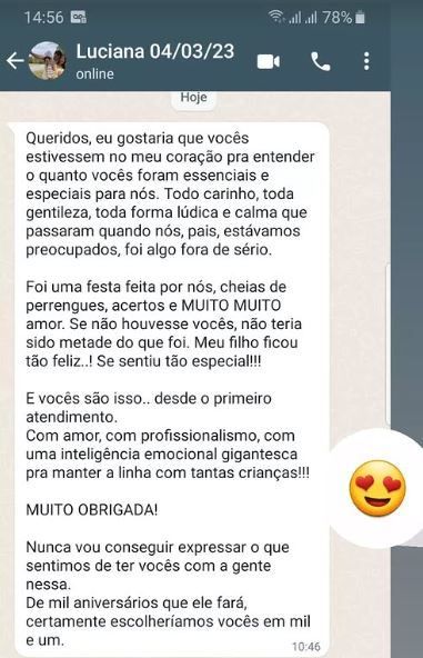 Te apresento a seguir esse vídeo, onde você pode ver o resultado da relação de uma das minhas funcionárias com as crianças através da aplicação do método. As brincadeiras sem telas e a conexão que ela gerou com as crianças ao aplicar o método foi tão boa, que resultou no que você vê nesse vídeo. As crianças simplesmente nem queriam deixá-la ir embora, pois adoraram o brincar - sem telas...E ali, as crianças sequer nem lembravam da existência das telas.